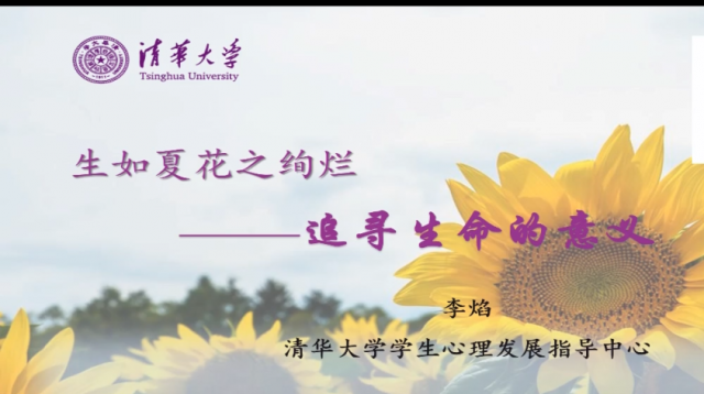 此次公益直播课由江西师范大学承办,清华大学学生心理发展指导中心主任李焰教授授课,主题为“生如夏花之绚烂—追求生命的意义”。在直播课中,李焰教授从清华大学110周年校庆出发,向同学们介绍了清华杰出校友的先进事迹,用习近平总书记“扣好人生第一粒扣子”的讲话,引导出了大学生要树立正确的价值观,实现人生的意义。接下来,李焰教授分别从心理发展、应对丧失、生命繁荣三个部分讲述了大学生如何适应大学生活、应对成长挑战和追求生命意义。整个直播课中,李教授用幽默风趣的语言、生动活泼的事例向同学们传授了心理健康的相关知识和应对策略,受到了同学们的热烈欢迎。课程结束后,同学们纷纷表示将好好关注自身的心理健康,积极适应大学生活,勇敢应对成长中的丧失,活出更美好的自己。