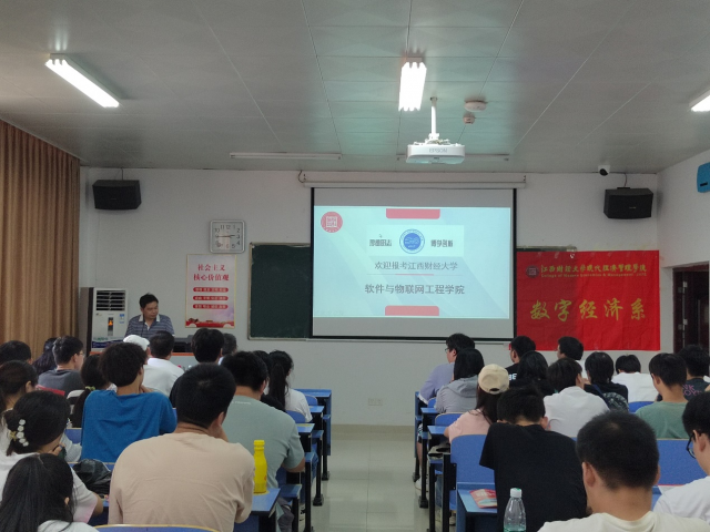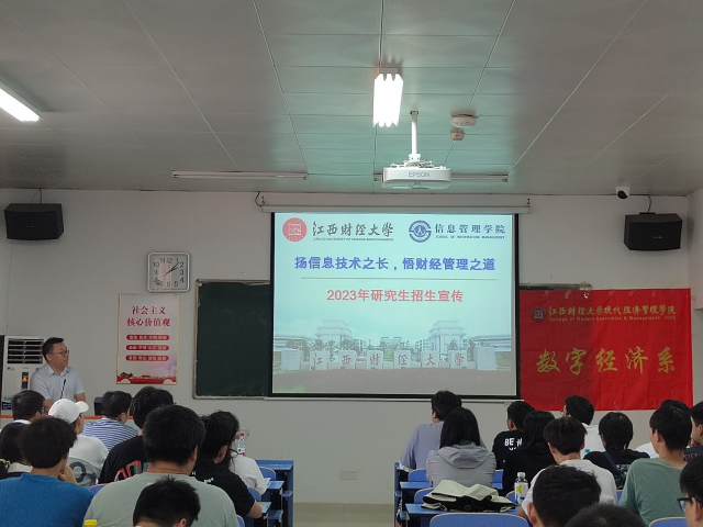 9月19日下午,在求知楼1107教室,由江西财经大学信息管理学院沈波副院长,软通学院导师组蔡鹏组长亲自坐镇、权威解读两大学院2023年研究生招生政策。我系共50余名师生参与。