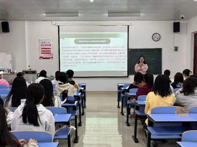 肖乐乐老师,结合专题“为什么要信仰马克思主义”,阐述了党不断开辟马克思主义中国化时代化新境界的理论自觉、不断开创马克思主义中国化时代化新境界。从理论和现实两个维度,解答了学生思想上的困惑,激发学生为民族复兴和人民幸福而发愤学习的责任感和使命感。