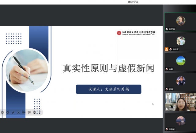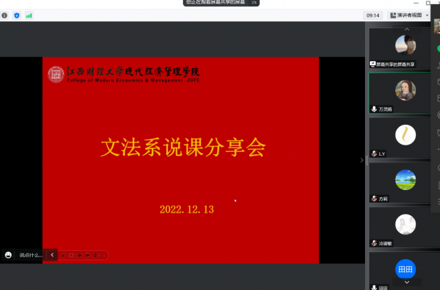 为进一步增强教研活动的实效,锤炼教师教学基本功,推动教育教学改革的纵深发展,12月13日下午,文法系于腾讯会议室举行了说课分享活动,由参选“教师十佳”的三位教师进行展示,文法系全体教师参加了此次活动。