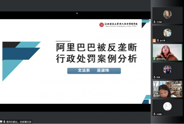 第二位是法学教研室巫淑玮老师就《经济法学》课程中的四种垄断行为、滥用市场支配地位的问题进行说课分享,从教材分析、学情分析、教学目标、教学重难点、教学方法、教学过程等方面进行讲解,说课环节能紧扣课程的思政目标,结合社会效益进行主旨的延伸和升华。