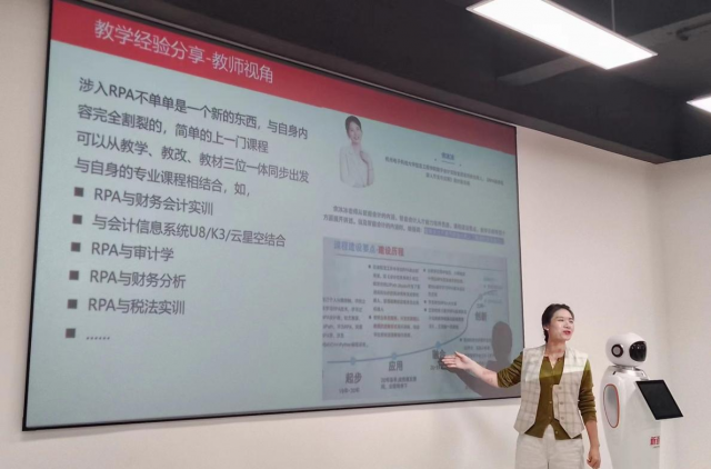 本次培训的最后环节是案例分享研讨交流,由杭州电子科技大学余冰冰教授结合贵校数智化发展的成功经验,解读了关于RPA行业的现状以及影响和需求,同时也分享了RPA教学思路及待解决问题等相关内容。在场的教师学员都听得津津有味,意犹未尽。