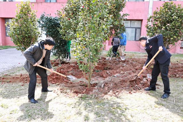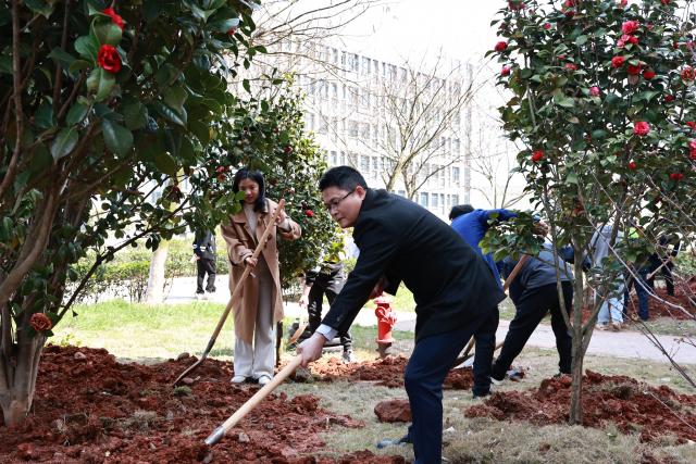 活动中,师生们手持铁锹等工具,分工协作、相互配合,有条不紊地挖坑、铲土、栽树、浇水,忙得不亦乐乎。大家热情高涨,干劲十足,每一个环节都一丝不苟,积极投身植树护绿行动当中。春风拂过,一棵棵树苗迎风而立,焕发出春的生机和活力。院领导在植树后与同学们亲切交流,勉励大家为美丽校园建设贡献青春力量。