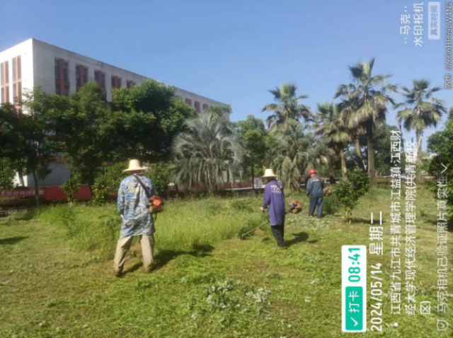 每年上半年是梅雨季,潮湿温暖的环境促使校园杂草丛生,物业服务单位对校区灌木、草坪开展两次全面修剪工作、两轮植物病虫害防治工作,清理了校区12棵枯死合欢树;对图书馆进行了两次集中大扫除,完成一教两侧玻璃顶棚的清洁,对敬业楼、大学生活动中心、实验楼、一教、二教等屋面天沟及校园湖面进行了集中清理;在校区各楼栋外围投放了112个灭鼠盒,同时对招待所及学生公寓附近发现的蜂巢进行了清除。