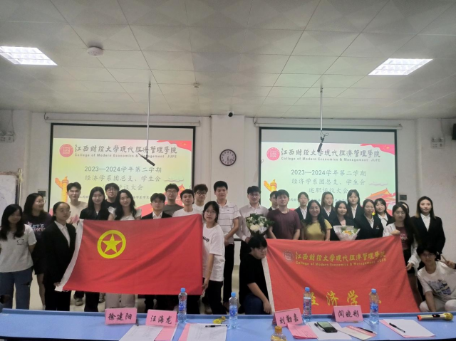 为总结经济学系团总支、学生会各部门过去一年的工作成果,分享经验,并对新一学年的工作进行展望。6月13日,经济学系于求知教学楼1102教室开展2023—2024学年第二学期经济学系团总支、学生会述职评议大会。参与此次述职大会的嘉宾有经济学系党总支副书记刘勤嘉、经济学系团总支负责人汪海龙、经济学系辅导员徐建阳和经济学系辅导员闫晓彤。