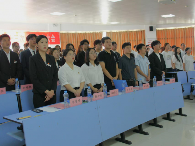 伴随着庄严的国歌,会议缓缓拉开了序幕,全体师生身穿正装,起立奏唱国歌。会议开始,会计学系主席团成员李子恒宣读贺信,对此次学生代表大会的召开表示祝贺。紧接着,汪海龙致开幕词,他提出此次大会的主要目的是团结带领我系广大青年学生积极投身于学院的建设和发展工作中去,引导青年学生自我管理、自我服务、自我建设,为建设和谐美丽的校园文化而不断努力,希望学生干部们能在未来的工作中保持初心,牢记担当,不负自己,不负国家,不负韶华。各团总支部之间紧密相联,为经济学系开创新的辉煌。