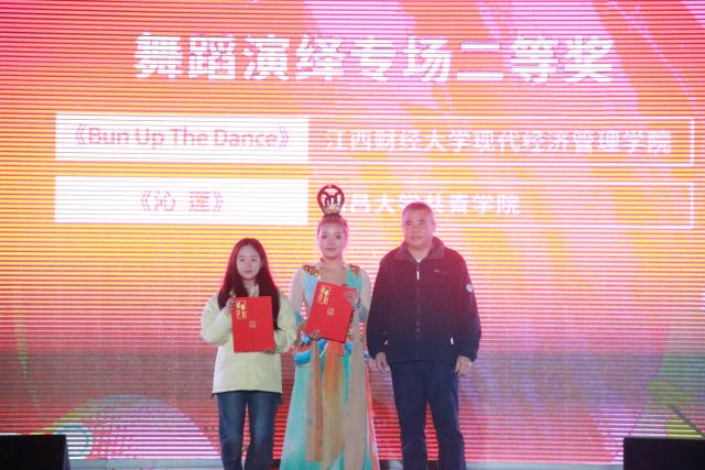 最后,我院EMD街舞社带来的节目《Bun Up TheDance》荣获二等奖,大学生艺术团主持队《为了新中国,前进》、器乐协会《火车日记》荣获三等奖、《滚烫》、《歌曲串烧-光与心声》荣获优秀奖。