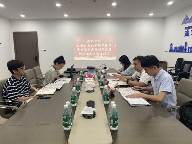 调研组一行首先走访了江西嘟咔熊传媒有限公司,公司负责人热情接待了调研组。校企双方在座谈会中围绕毕业生就业、校企合作模式等进行深入的探讨交流。调研组在企业负责人带领下,还参观了产品直播间、休闲文化区和员工宿舍。