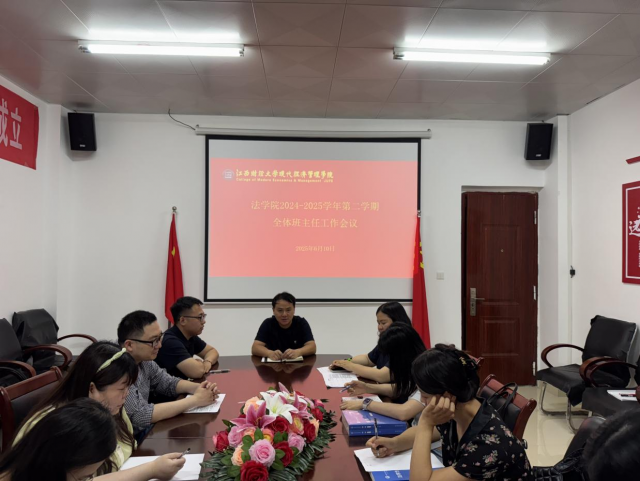 为全面总结本学期学生管理工作成效,分析现存问题并科学谋划后续工作方向,进一步提升班主任工作质量与育人水平,6月10日中午,法学院在二教2330会议室召开2024-2025学年第二学期全体班主任工作会议。会议由法学院党总支书记王锐愚主持,法学院全体班主任参加会议。
