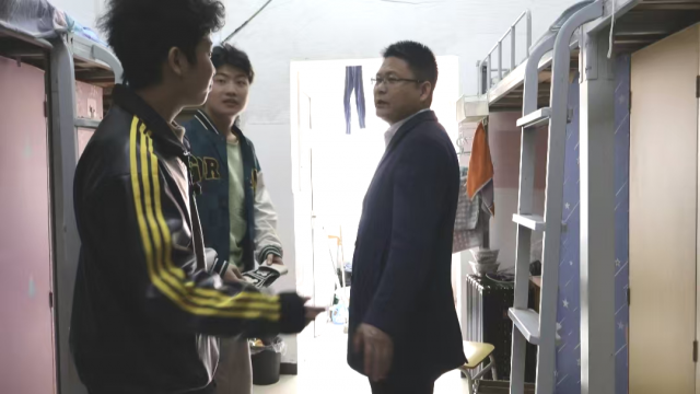 就餐结束后,吴小刚深入学生宿舍,实地查看同学们的住宿环境,并与大家亲切交谈。吴小刚详细询问了同学们的日常起居、学习进展和宿舍生活情况,认真听取了大家对宿舍设施、生活服务等方面的意见建议并叮嘱同学们要养成良好的生活习惯,保持宿舍整洁、通风,注意用电安全和人际和谐,共同营造温馨、安全、有序的生活氛围。