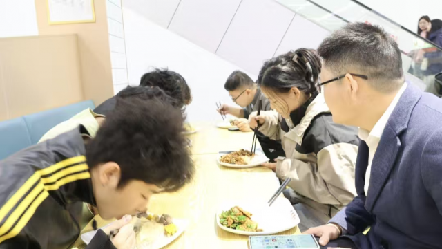 紧接着,吴小刚前往学生食堂,与班级同学一同排队取餐、共进午餐。餐桌上,吴小刚与同学们边吃边聊,话题从课程学习、社团活动延伸到饮食健康、消费观念等生活细节。他亲切询问同学们对食堂菜品种类、口味和价格的看法,并鼓励大家养成节约粮食、均衡营养的良好饮食习惯。吴小刚还结合自身经历,分享了时间管理与学业规划的经验,现场气氛轻松融洽。
