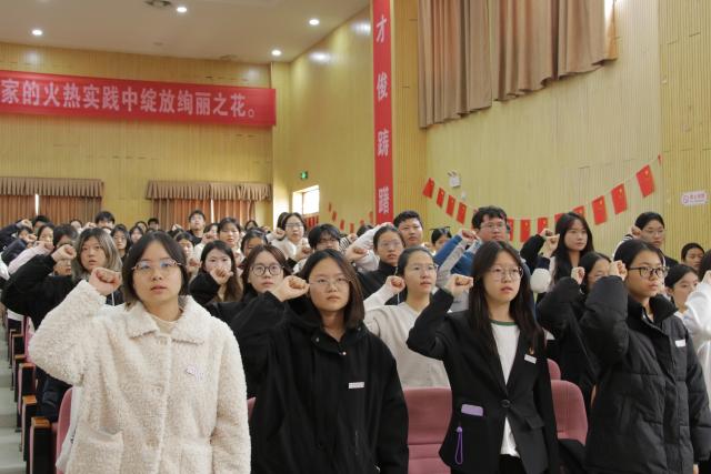 学院于12月10日中午在明德楼大学生活动中心101报告厅举行2025年度下半年新发展团员入团宣誓仪式。学院党委副书记邱晓平,学院党委委员、组织部部长孙瑛出席仪式。党校校长、党委组织部副部长、团委书记吴娇,新发展团员共同参加仪式。