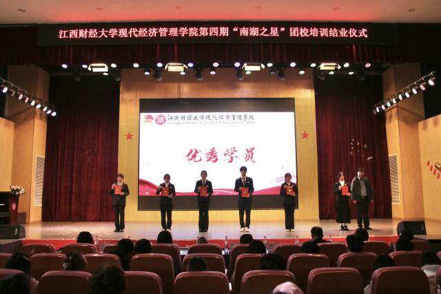 为深入学习贯彻习近平新时代中国特色社会主义思想,进一步强化学院团员队伍建设,凝聚新时代新征程的奋进力量,学院于12月11日中午于明德楼大学生活动中心101报告厅举办第四期“南湖之星”团校培训结业仪式。学院院长毛小兵,党委书记黄黑平,党委副书记邱晓平出席会议。党校校长、党委组织部副部长、团委书记吴娇,党委学生工作部部长冯伟,各二级学院党总支(副)书记、团总支书记参加会议。