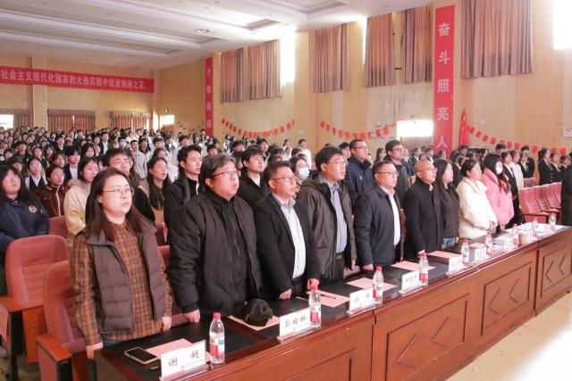 仪式伊始,全体人员整装肃立,奏唱中华人民共和国国歌,仪式在庄严的国歌声中拉开帷幕。嘹亮歌声传递着青年学子们对祖国的热爱,凝聚着新时代奋进之力,彰显出新时代青年牢记使命,逐梦前行的坚定决心。