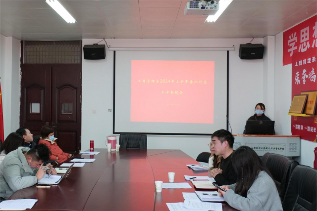 为深入学习贯彻习近平总书记关于意识形态工作的重要论述,严格落实意识形态工作责任,进一步加强和改进意识形态工作,落实党管意识形态原则,3月4日下午,在1313会议室,工商管理系召开2024年上半年意识形态工作专题会。工商管理系党总支副书记谢超主持会议并讲话,工商管理系全体教师参会。