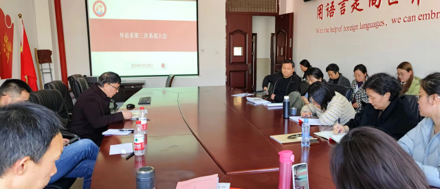 外语系于3月20日在一教1411成功举办了第3次系会暨科研论坛。本次会议吸引了众多师生的积极参与,共同探讨外语系的发展和未来。