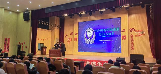 杨洁警官围绕如何防范网络诈骗,给大家介绍了网络诈骗的起源、网络诈骗的特点,还介绍了许多经典被骗案例、名人案例。最后桂良志警官给学生们讲解了网络诈骗的多种手法,以及如何预防网络诈骗等几个方面用生动形象的语言给学生讲解互动,也举出了许多真正的案例用最朴实最贴近学生的语言教育我们的学生要提高自我防范意识。在坐的全体学生认真听讲,并且与桂良志警官互动交流,气氛活跃。
