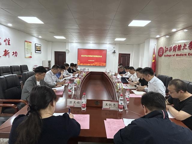 4月28日下午,江西省法学会共青城市理事座谈会在学院敬业楼202会议室召开。会议深入传达学习习近平总书记向中国法学会第九次全国会员代表大会的重要致信精神,以及中央政法工作会议、省委常委会会议、省委政法工作会议精神,研究部署当前和今后一个时期江西省法学会共青城市理事会工作。共青城市委常委、政法委书记郑斌,共青城市委政法委常务副书记胡巧林,共青城市检察院副检察长徐建涛,共青城市公安局党委委员、国保大队大队长丁浩峰,共青城市司法局党组成员、副局长姚圣坤,共青城市委政法委法院法官助理何小龙,共青城市委政法委干部王琦,南昌大学科学技术学院党委书记黄希红,江西师范大学科学技术学院副教授张小桃,南昌应用技术师范学院马克思主义学院副院长刘德彰,江西农业大学南昌商学院法学专业负责人王庭琪,江西财经大学现代经济管理学院党委委员、组织部部长孙瑛出席会议。会议由郑斌主持。