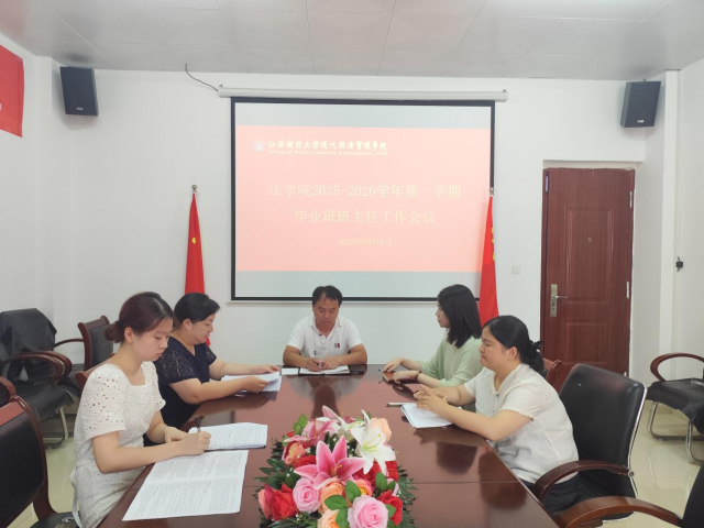 为深入贯彻落实国家关于高校毕业生就业工作的决策部署,精准应对当前就业形势,提前谋划、全面部署2026届毕业生就业工作,10月9日上午,法学院在二教会议室召开就业工作专题推进会。法学院院长万灵娟、党总支书记王锐愚、全体毕业班班主任及辅导员张鹏达、詹雅惠参加会议。会议由法学院党总支书记王锐愚主持。