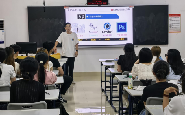 李天凯老师结合专业特色、专业发展和学科背景等方面作了详细介绍。随后他对当下产品设计专业发展趋势、就业前景和该专业的学习方法与同学们做了分享交流。