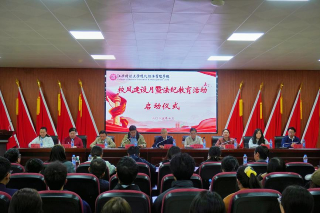 启动仪式最后,全体人员奏唱江西财经大学校歌,邱晓平宣布“砥砺品行,勤学笃实,共建务实优良校风学风”建设月活动正式启动。