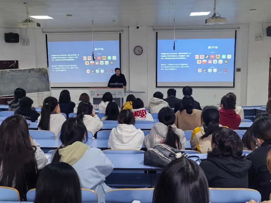 应永锋以“电商运营”为主题开展专题讲座。他结合自身丰富的行业经验与实际案例,从电商平台运营策略、流量获取与转化、数据分析应用等核心模块进行深入讲解,分享了当前电商行业的前沿趋势。讲座过程中,应永锋与学生们积极互动,现场学习氛围浓厚,为学生搭建了高效的知识交流与技能提升通道。