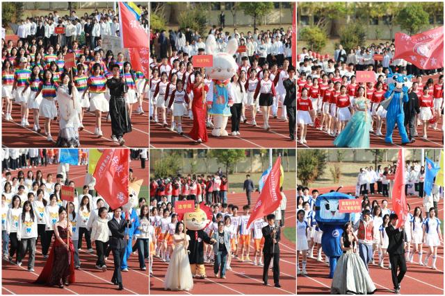 在激昂的《运动员进行曲》中,国旗队、校旗院旗队、彩旗队、教学学院代表队、专业代表队、教工代表队和裁判员代表队依次有序入场,展现了学院师生团结奋进、朝气蓬勃的精神风貌。