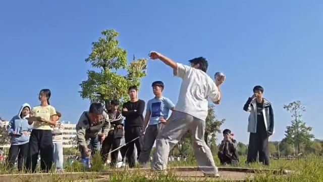 与此同时,田赛场地亦捷报频传:跳远赛区,运动员经有力助跑后在起跳板精准踏跳,身体腾空舒展后落入沙坑,激起阵阵沙尘,每一次成绩丈量都是对自我极限的突破;铅球赛场则尽显力量之美,健儿们握球、转身蓄力、滑步调整、挥臂发力,动作流畅且充满张力,铅球划破长空的抛物线里,凝聚着平日训练的汗水与对佳绩的渴望。