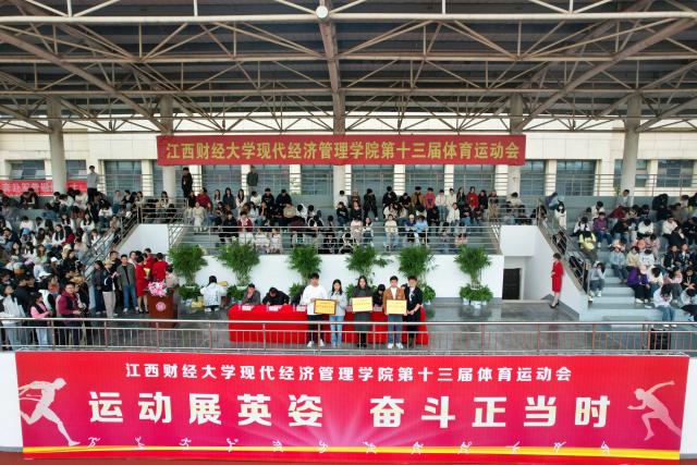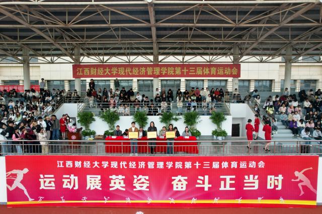 颁奖环节结束后,全场师生共同奏唱校歌,在悠扬的歌声中,张富成正式宣布江西财经大学现代经济管理学院第十三届体育运动会闭幕。