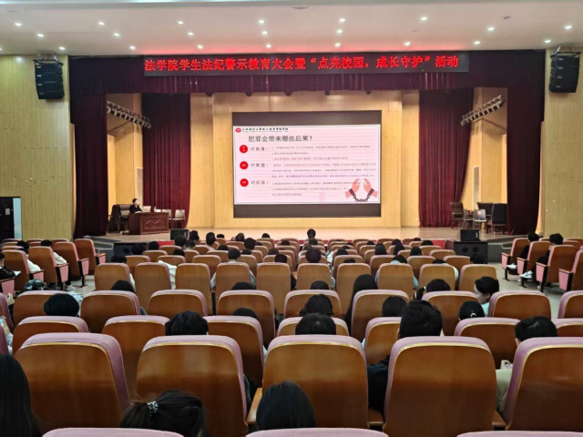 此次法纪教育专题讲座不仅普及了法律与校纪校规,更有力地营造了校园内遵纪守法、崇尚法治的良好氛围,为构建平安、和谐的校园奠定了坚实的法治基础。(图文/法学院)