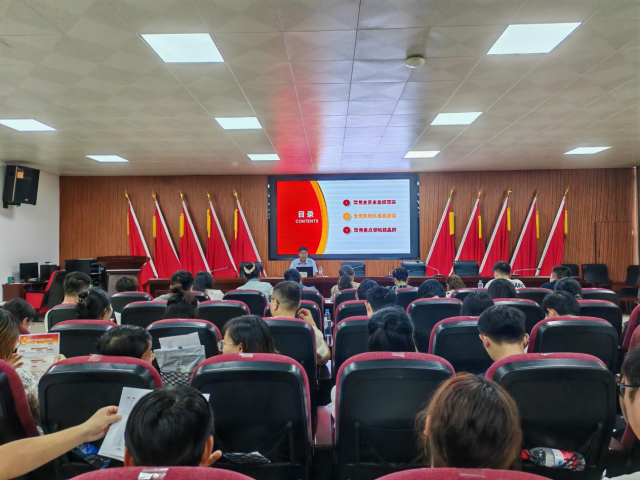为深入学习贯彻习近平新时代中国特色社会主义思想、党的二十大及二十届二中、三中全会精神,全面落实《中国共产党普通高等学校基层组织工作条例》《中国共产党纪律处分条例》要求,切实提升基层党务工作者党建与思政工作能力,打造政治过硬、作风扎实、业务精湛、水平突出的党务工作队伍,9月29日至10月30日,学院第四届“南湖先锋”党务工作者培训班在共青校区敬业楼101报告厅举行,党委副书记邱晓平作了专题授课,党委委员、组织部部长孙瑛出席培训会,各基层党组织党务工作者近80人参加培训。