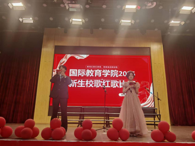金桂飘香,秋高气爽。为传承红色基因,厚植国家情怀,丰富校园文化生活,引导青年学子在红歌中汲取奋斗力量,10月31日下午,国际教育学院在大学生活动中心举办2025级新生校歌红歌比赛。国际教育学院党总支副书记胡传明老师、国际教育学院团总支书记张成浩老师、国际教育学院辅导员程欣蕾老师,国际教育学院辅导员彭旋老师与百余名新生共同观看比赛。