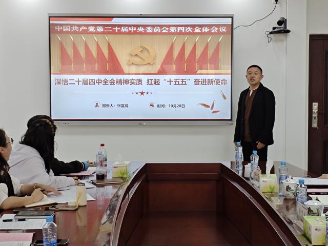 学习会上,党委委员、宣传部部长、统战部部长张富成同志作了题为《深入学习贯彻党的二十届四中全会精神》的辅导报告。报告围绕全会提出的新思想、新论断、新要求进行了系统解读和深入阐述,帮助与会人员深化了对全会精神的理解和把握。