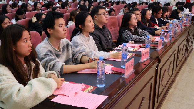 为厚植新生家国情怀,传承红色基因,展现商学院学子昂扬风貌,11月3日,商学院2025级新生校歌红歌合唱比赛在大学生活动中心101报告厅顺利举行。商学院党总支副书记谢超,商学院党总支副书记李骞,团委干事刘煜明,商学院办公室主任钟思琪,商学院团总支负责人胡婷婷以及往届十佳歌手邹昀辰、李美勋、邹洋帆、周子怡、周丽参加活动并担任评委。