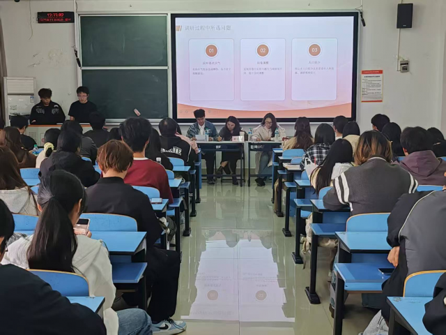 随后进入现问现答环节,同学们踊跃提问:“如何优化调研报告的编写流程?”“后续调研是扩大样本还是精细群体?”“怎样将前期工作做得更好?”田秀娟结合经验一一解答,现场互动热烈,激发了同学们对后续实践的思考。