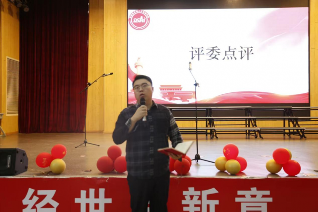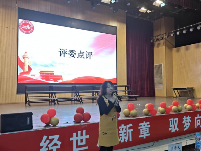 比赛结束后,刘煜明对本次活动进行了精彩点评。他首先肯定了2025级全体新生对校歌红歌比赛的付出,提到了几个最为印象深刻的班级,同时为合唱技巧提供了宝贵的建议。他希望同学们能够通过这次比赛能够增强民族自豪感与凝聚力,让红色文化在青年群体中代代相传。随后,袁园对活动进行总结,她希望同学们能将比赛中体现出的团结协作、集体荣誉感融入到今后的学习与生活,积极参与学院的活动,在数据科学与人工智能学院平台上展现个人魅力。