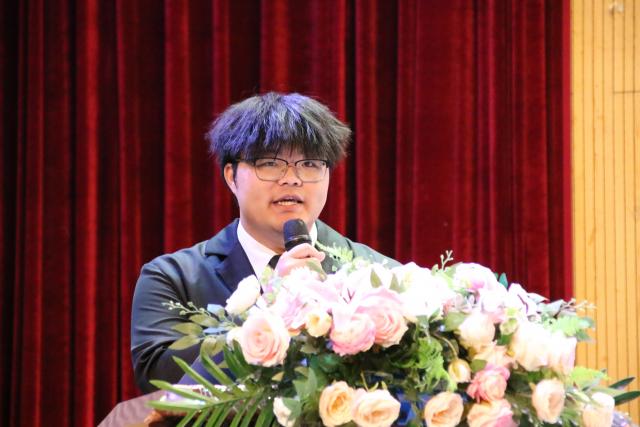 第二篇章以井冈山精神为主线,通过视频《我们的井冈山日记》和合唱《红星闪闪》,为在场师生再现了井冈山研学团队追寻红色足迹、感悟信仰力量的动人历程。随后,“青春井冈山行”成员代表谢冯康同学发言中,回顾了在井冈山这片红色沃土上的所学、所思、所悟。他表示将以井冈山精神为指引,努力成为一名信仰坚定的青年马克思主义者,同时激励所有人在未来的道路上不忘初心、砥砺前行。