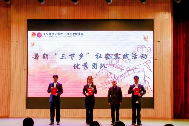 分享会由“三下乡”专题汇报视频《筑梦乡途》开场,生动展现了我院学子深入基层、服务乡村的实践风采。随后,各实践队伍带来了形式多样的节目表演:数据科学与人工智能学院带来的舞蹈《我的未来式》以青春活力的舞步点燃全场,在动感旋律中感受“我的未来我做主”的热血与坚定;经济学院的朗诵《犁壁山苏区赋》深情回顾红色历史,激励着青年学子传承革命精神,为乡村基层建设贡献属于自己的力量;商学院为全体师生带来舞蹈表演《相亲相爱》,展现了青年学子团结奋进、相亲相爱的精神风貌。