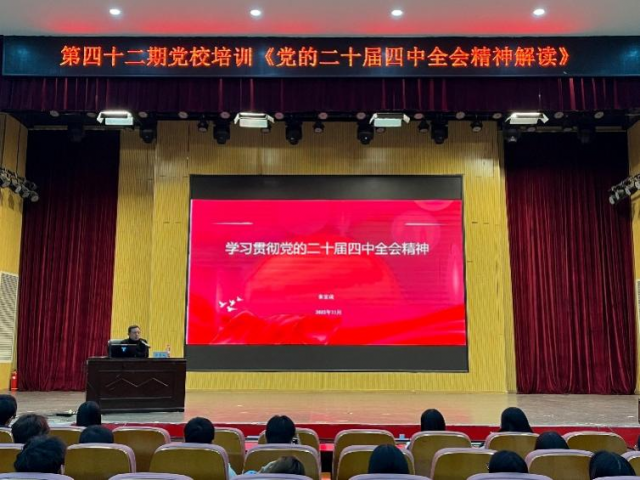 11月23日,学院党委委员、宣传部部长、统战部部长张富成在大学生活动中心101报告厅为学院第四十二期入党积极分子培训班学员讲授学习贯彻党的二十届四中全会精神专题党课。通过系统阐释党的二十届四中全会精神核心要义,引导青年学子将个人成长融入国家发展大局,在推进中国式现代化中勇担时代使命。