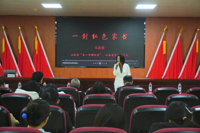 为传承红色基因、厚植家国情怀,丰富学院“大思政课”教学形式,积极探索全省大中小学思政课(红色文化)一体化教学实践,12月18日上午,我院于敬业楼101室举办“红色家书润初心 百年精神励青春”主题活动。活动特邀江西省“五一巾帼标兵”、省学科带头人、中小学高级教师朱淑蕾带来原创沉浸式讲述节目《一封红色家书·百年赤子初心》,带领青年学子穿越时空,感悟革命先烈的赤子初心与信仰力量。学院党委书记黄黑平,党委副书记邱晓平出席活动,活动由党委学生工作部部长冯伟主持。