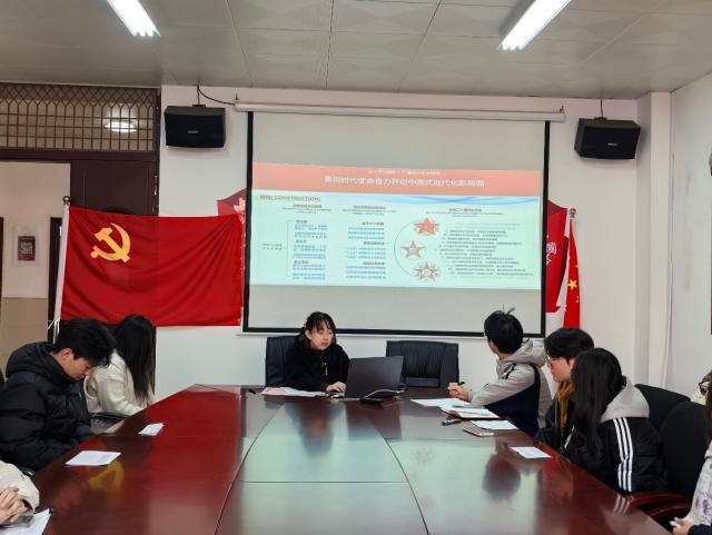 支部书记袁园围绕“深化改革担使命,青春奋进新征程”这一主题讲授党课,深入解读了全会提出的重大思想观点、重大论断和重大部署。在领学“勇担时代使命奋力开创中国式现代化新局面”的核心要义时,袁园重点讲解了“准确把握‘十五五’的历史方位和总体要求”“深刻理解‘十五五’阶段性要求和发展重点”“勇担时代使命奋力开创中国式现代化新局面”三大板块。同时,针对“加快高水平科技自立自强”的重点任务,她结合学院学生参与“挑战杯”、数学建模竞赛以及投身基层志愿服务的鲜活案例,引导党员思考如何将个人奋斗融入国家现代化建设的宏伟蓝图。