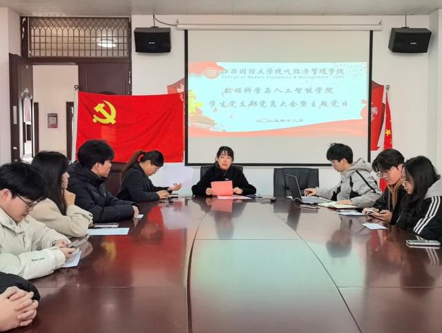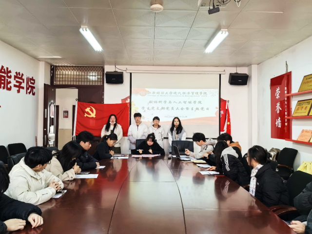 为进一步加强党员队伍建设,增强党员队伍生机与活力,按照学院学生发展党员实施细则,江西财经大学现代经济管理学院数据科学与人工智能学院学生党支部(以下简称“支部”)于12月18日在求知楼1213教室召开党员大会,讨论四位预备党员的转正事宜。会议由支部书记袁园主持,支部全体党员参与。