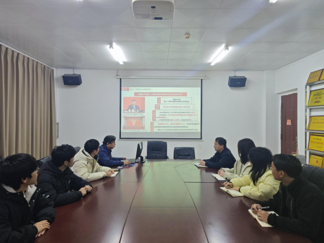 为深入学习贯彻党的二十届四中全会精神,凝心铸魂,勇担重任,12月19日上午,法学院党总支书记王锐愚带领法学院赴经济学院,于求真楼2124开展以“深入学习贯彻党的二十届四中全会精神”为专题的党委理论学习中心组联学活动。经济学院党总支书记彭瑜琳主持活动并领学。