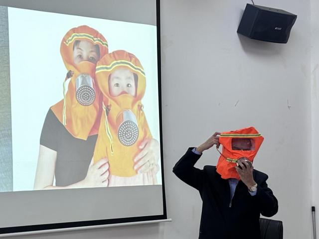 理论讲解结合实践操作,肖黎详细讲解不同类型灭火器的具体使用步骤与操作要点,以及防护用具的相关用法,除此之外,他也系统阐述了突发状况发生时,人员采取科学防护措施、保障自身安全的具体方法,进一步提升了教职工应对突发火灾的应急反应能力和自救互救技能。